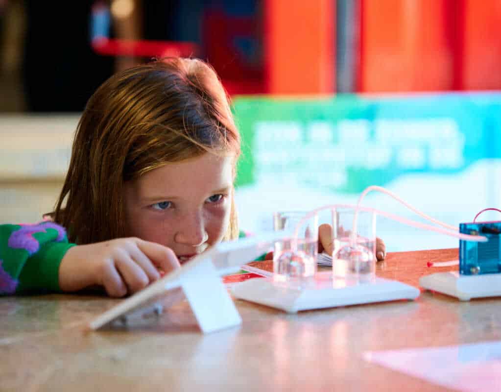 aan een slinger te draaien. Waarna je kleine modelautootjes op waterstof kunt laten